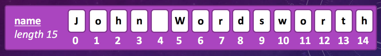 Note. Notice that the first letter is given position/index ‘0’ and all subsequent letters step up from there.