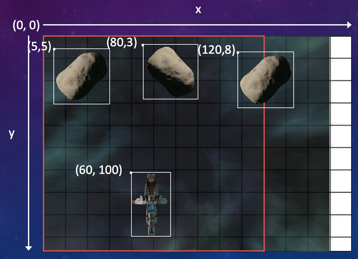 In the previous lesson we mentioned that the game world is almost like a table with lots of pieces resting on top of it. Consider the game’s co-ordinate system against while completing this task;
